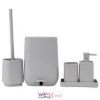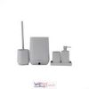 Kit Conjunto para Banheiro com 5 Peças Cinza Square Mood. Contém 1 Lixeira Pedal de 3 Litros, 1 Dispensador de Sabonete Líquido de 300ml, 1 Escova Saniária, 1 Porta Escova Dental e 1 Bandeja de Apoio