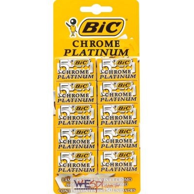 Cartela com 10 caixas, cada caixa com 5 laminas duplo fio. Totalizando 50 laminas em uma cartela.