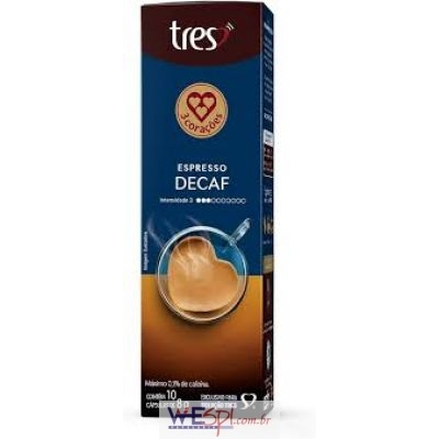 O Café Espresso Descafeinado em cápsula TRES 3 Corações é ideal para quem busca desfrutar do sabor de um bom café sem a cafeína. Produzido com um rigoroso método de descafeinação, que garante um teor máximo de 0,1% de cafeína, este espresso de intensidade 4 oferece aroma suave, sabor levemente adocicado e baixa acidez. Uma escolha perfeita para momentos de relaxamento, sem abrir mão da qualidade e do sabor.