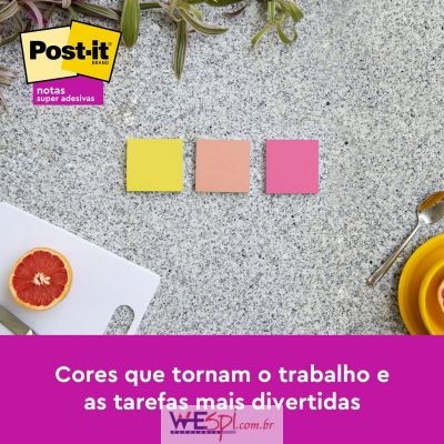 Nova colecao dos famosos blocos de notas adesivas Post-it em packs com mais variedades de cores. Suas ideias e sonhos so comecam a tomar forma quando sua caneta encontra o papel. Porque quando voce coloca suas ideias no papel, faz delas um pouco mais reais. Notas Post-it sao as melhores parceiras neste ponto de conexao. e a transformacao de seus pensamentos e os murais coloridos de Notas Post-it que iluminam as ideias de todos.