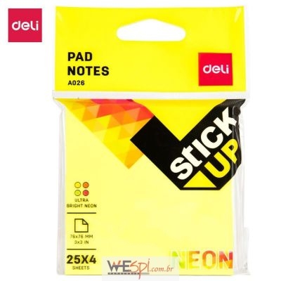 BLOCO DE RECADO AUTOADESIVO 76X76MM FLUORESCENTE 4X25FLS - UN UNIDADE - DELI