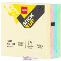BLOCO DE RECADO AUTOADESIVO 76X76MM TONS PASTEIS 4X100FLS - UN UNIDADE - DELI