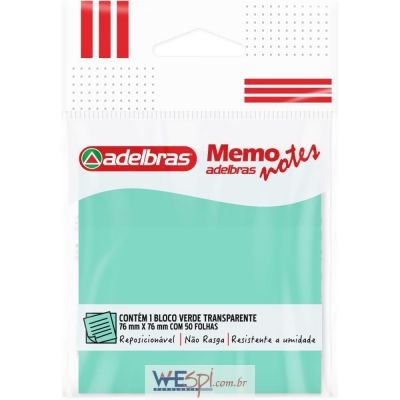 BLOCO DE RECADO AUTOADESIVO MEMONOTE TRANSPARENTE 76X76 VE - UN UNIDADE - ADELBRAS