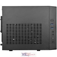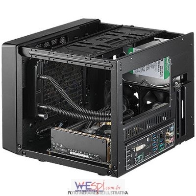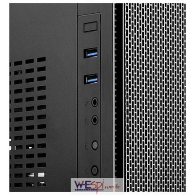 O Gabinete Mini-ITX com frente em rede e ventiladores nos painéis laterais e superior para melhor refrigeração;