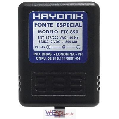 Descrição: Fonte para teclado; Aplicações: Cassio: SA-2/39/CA-100/110 KAWAI: X-20/30 Entrada bivolt; Saída 9Vdc 800mA C-.
