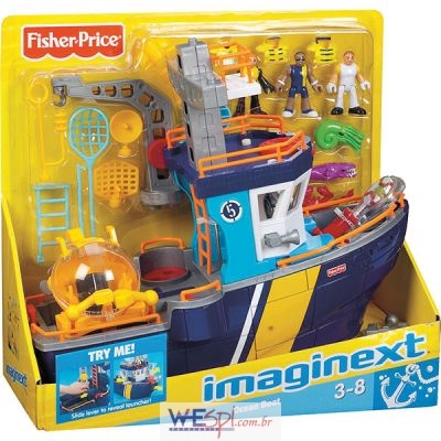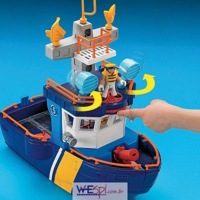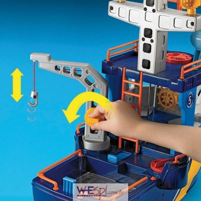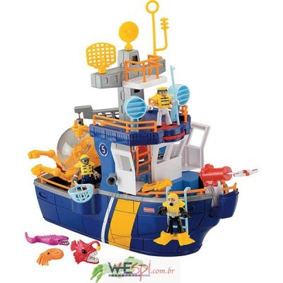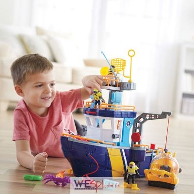 O Imaginext Super Navio Aventura Mattel é um enorme kit com criaturas e objetos do mar, um navio de exploração marinha para grandes profundidades. Vem com três figuras de homens e quatro animais marinhos, além de um submarino com radar que roda de verdade, âncora, cabine de comando, guindaste com corda e um lançador de boias super legal. É demais!
