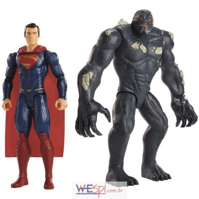A melhor ação de herói contra vilão com estes dois personagens do novo filme da Liga da Justiça. A figura do Batman, de 30cm, está pronta para a batalha com sua nova armadura, contra o Lobo da Estepe de 34cm. Ambas as figuras possuem detalhes luxuosos, fiéis aos designs dos filmes. O vilão pretende capturar as caixas para destruir o planeta. Já o Batman pretende derrotá-lo. Recrie esta fenomenal batalha e adicione este pacote com duas figuras na sua coleção. Em nenhum outro lugar é possível encontrar um vilão nesta escala, com capacete removível e figura do Batman com seus equipamentos táticos!